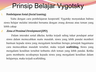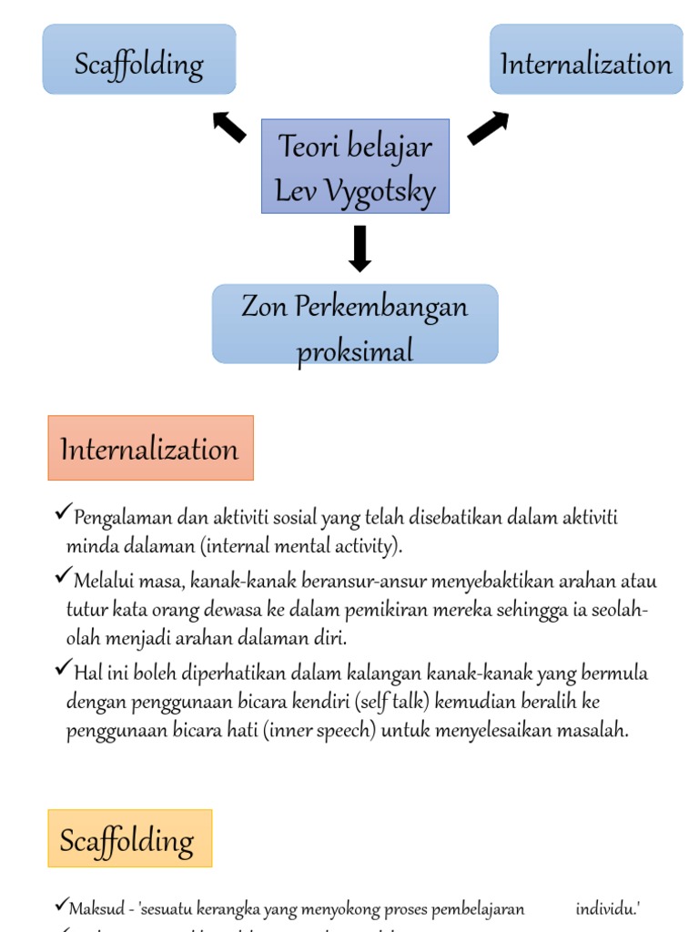 Slavin mengemukakan bahwa ada 2 implikasi utama dari penerapan teori perkembangan kognitif Vygotsky92. Penulisan artikel ini bertujuan untuk menginformasikan bahwa. Ada dua konsep penting dalam teori Vygotsky yaitu Zone of Proximal Development ZPD dan Scaffolding.