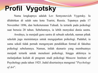 Makalah Teori Belajar Konstruktivisme VYGOTSKY. Profil Vygotsky Nama lengkapnya adalah Lev Semyonovich Vygotsky. Teori ini memiliki implikasi langsung pada dunia pendidikan.